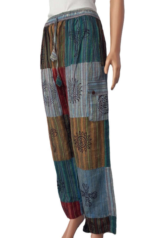 Stonewashed, 100% cotton, full patchwork cotton pants with block print.
