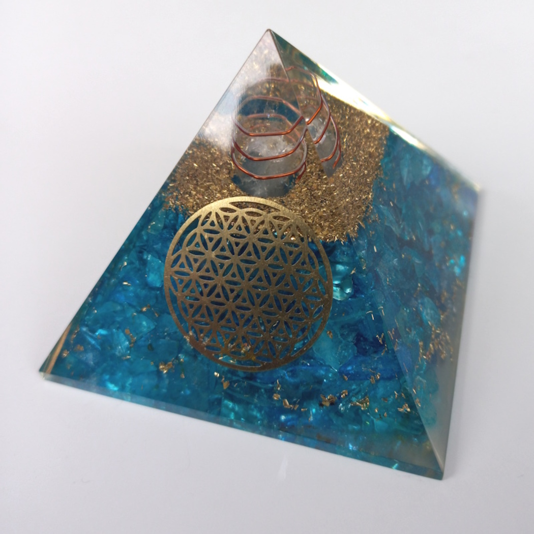 There is a Natural Crystal Point in the center wrapped with copper wire.