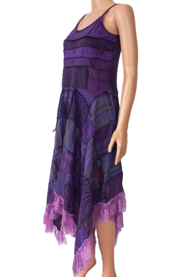 Step into Purple Power with the Knit Patchwork Sundress from Colour My Tribe—an eye-catching handcrafted patchwork dress designed for standout summer style. Each piece is made by hand sewing knit patches together, creating unique texture and color-block charm, finished with delicate lace trim for a feminine touch. Ideal as a boho sundress, festival outfit, or everyday casual dress.