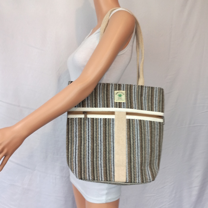 Hemp and cotton padded tote bag.