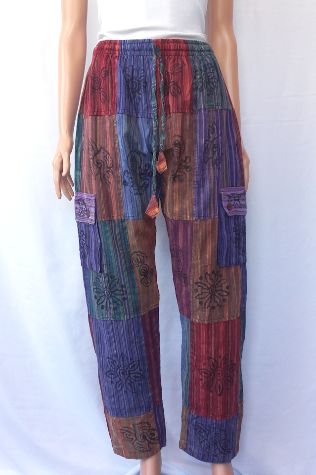 100% cotton fully patchwork on both sides of pants and block print.