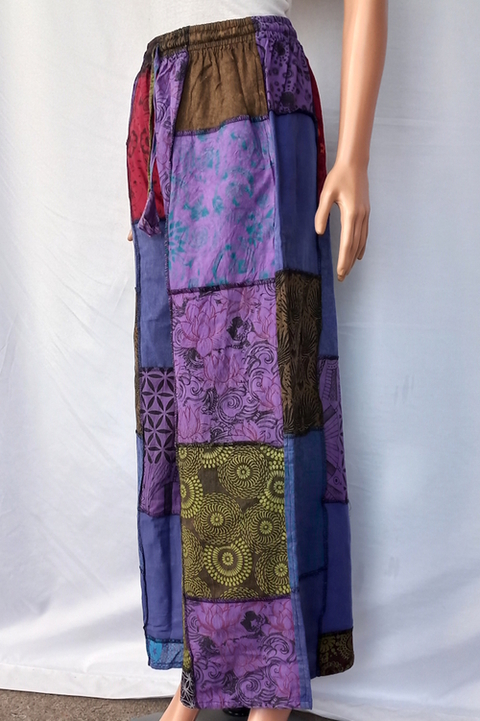 Stonewashed, 100% cotton, fully patchwork palazzo pants.