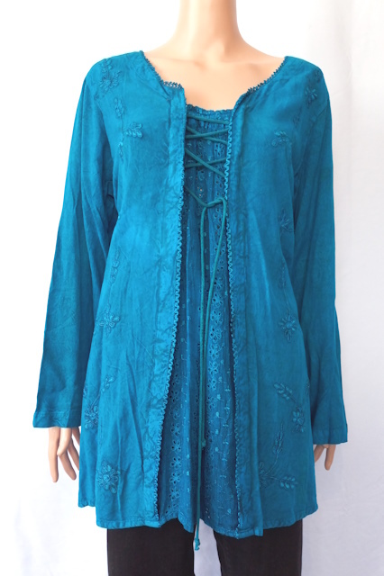 This renaissance inspired celtic blouse is made with premium acid wash rayon fabric.