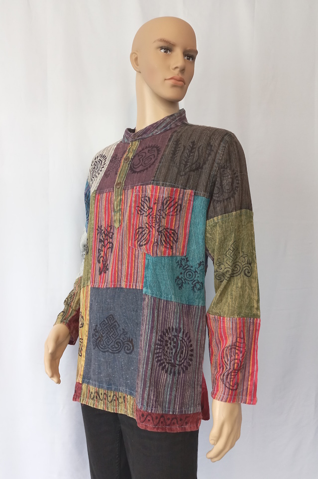 As each shirt is handmade with patches joined together, each one is slightly different.