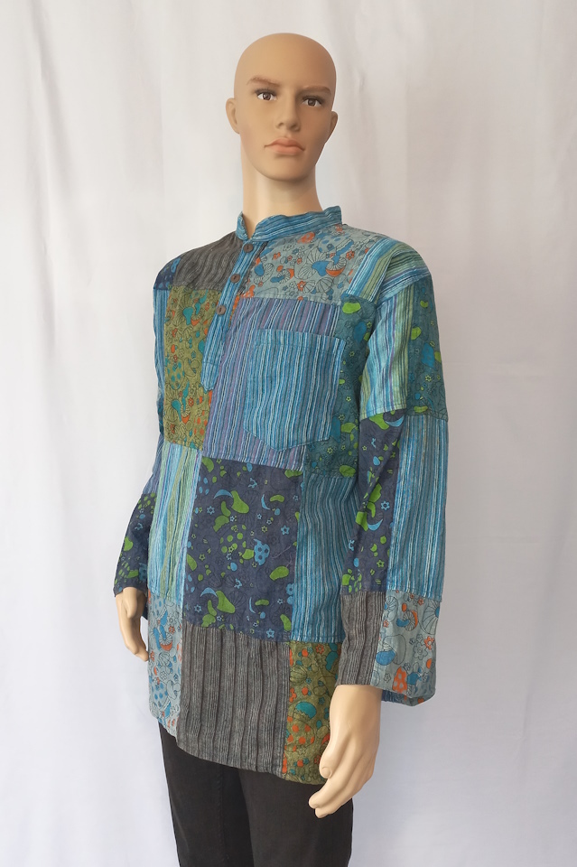 Stonewashed, 100% cotton, full patchwork shirt with mushroom print patches.