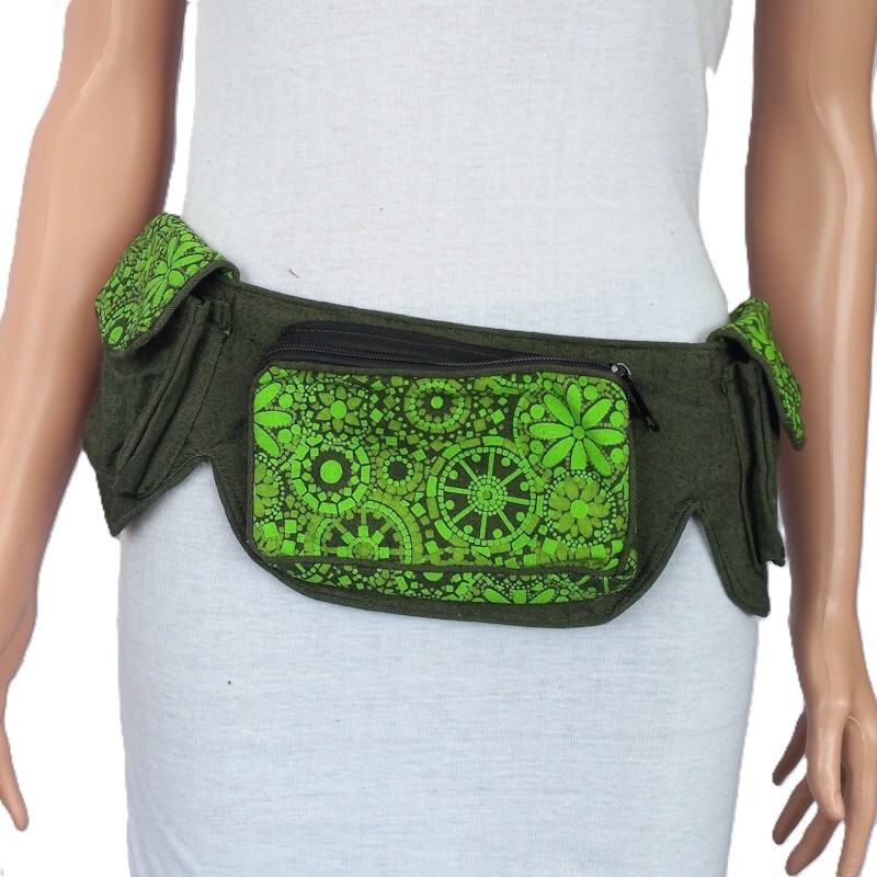 100% cotton belt bag with three front print pocket.