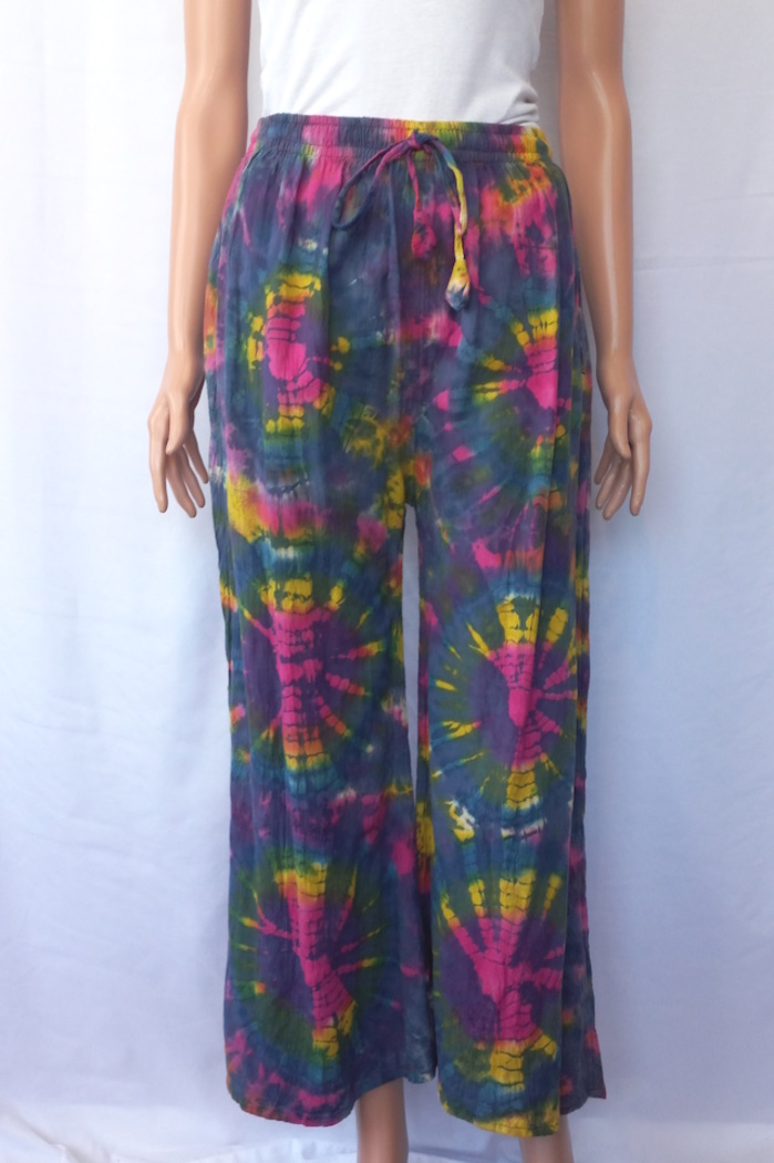 100% cotton tie dyed palazzo style pants.
