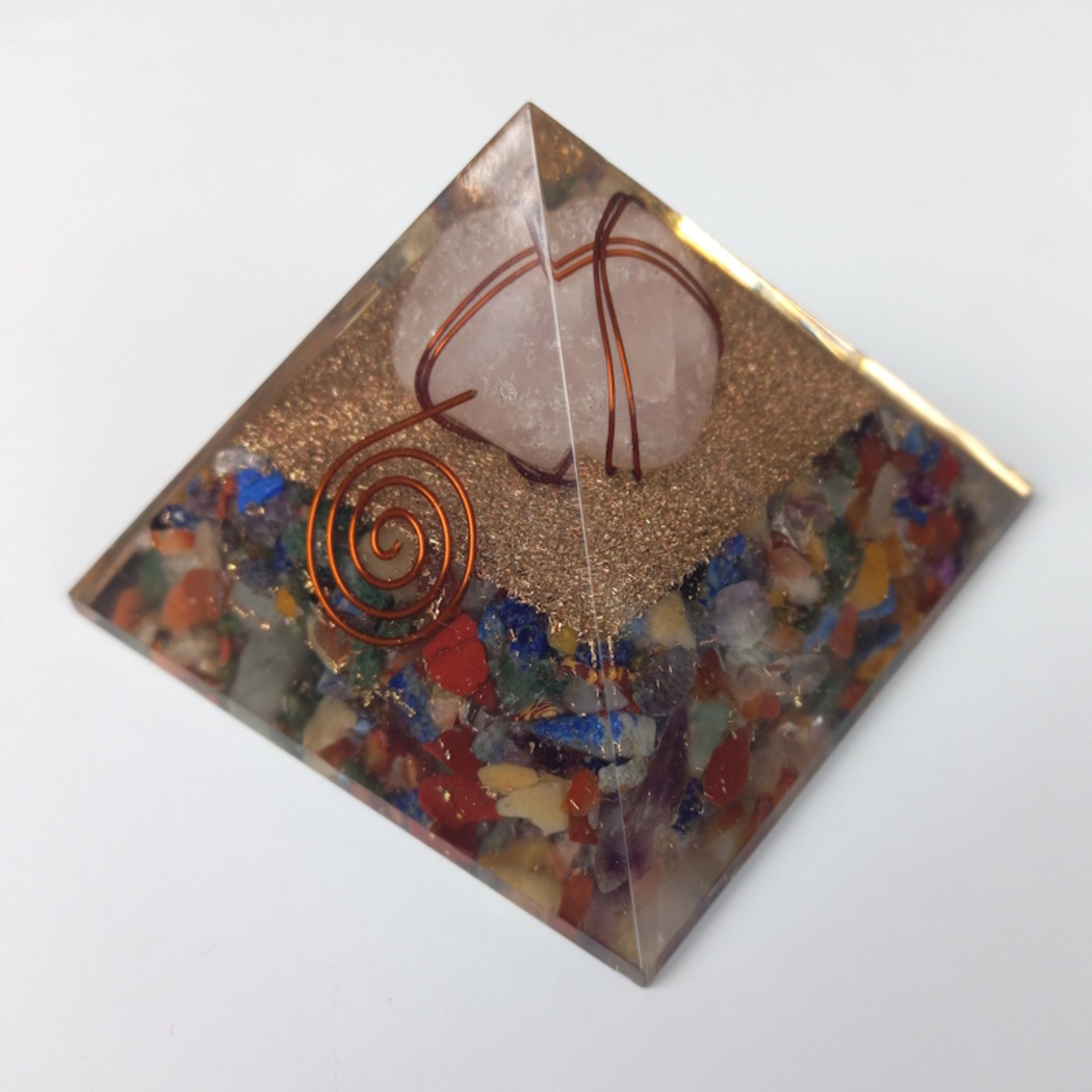 Has copper dust and a wire-wrapped tumbled gemstone.